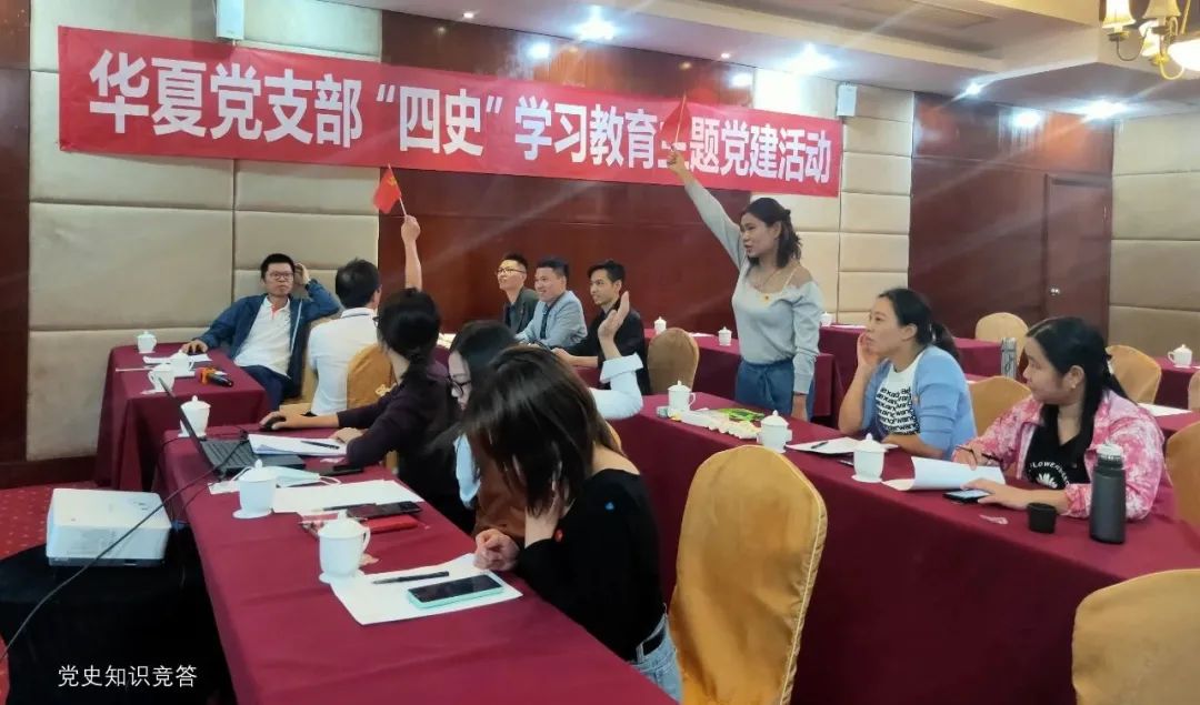 之后,華夏黨支部在酒店會議室開展“四史”學(xué)習(xí)教育主題黨建活動。激昂澎湃、振奮人心的國歌——《義勇軍進行曲》拉開了會議帷幕,全體黨員起立,唱國歌。