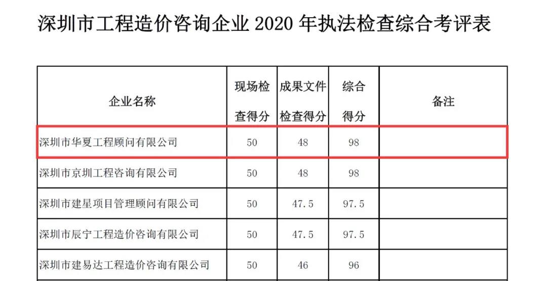 我司在深圳市工程造價咨詢企業(yè)2020年執(zhí)法檢查中綜合考評得分榮獲第一,此次榮譽的獲得離不開公司嚴(yán)密科學(xué)的質(zhì)量管控制度和員工們專業(yè)的技術(shù)能力。未來,我司將一如既往地秉承“以信立業(yè),以德興業(yè)”的經(jīng)營理念,繼續(xù)執(zhí)行深圳市建設(shè)工程計價標(biāo)準(zhǔn)和相關(guān)規(guī)范,以更加精湛的技術(shù)為客戶提供工程造價咨詢服務(wù)。