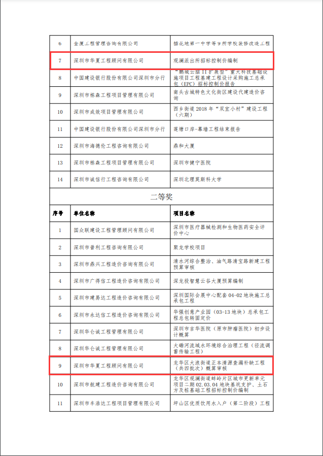 2.我司完成《龍華區(qū)大浪街道正本清源查漏補(bǔ)缺工程(共四批次)概算審核》造價(jià)咨詢成果,榮獲深圳市優(yōu)秀工程造價(jià)成果 二等獎(jiǎng)