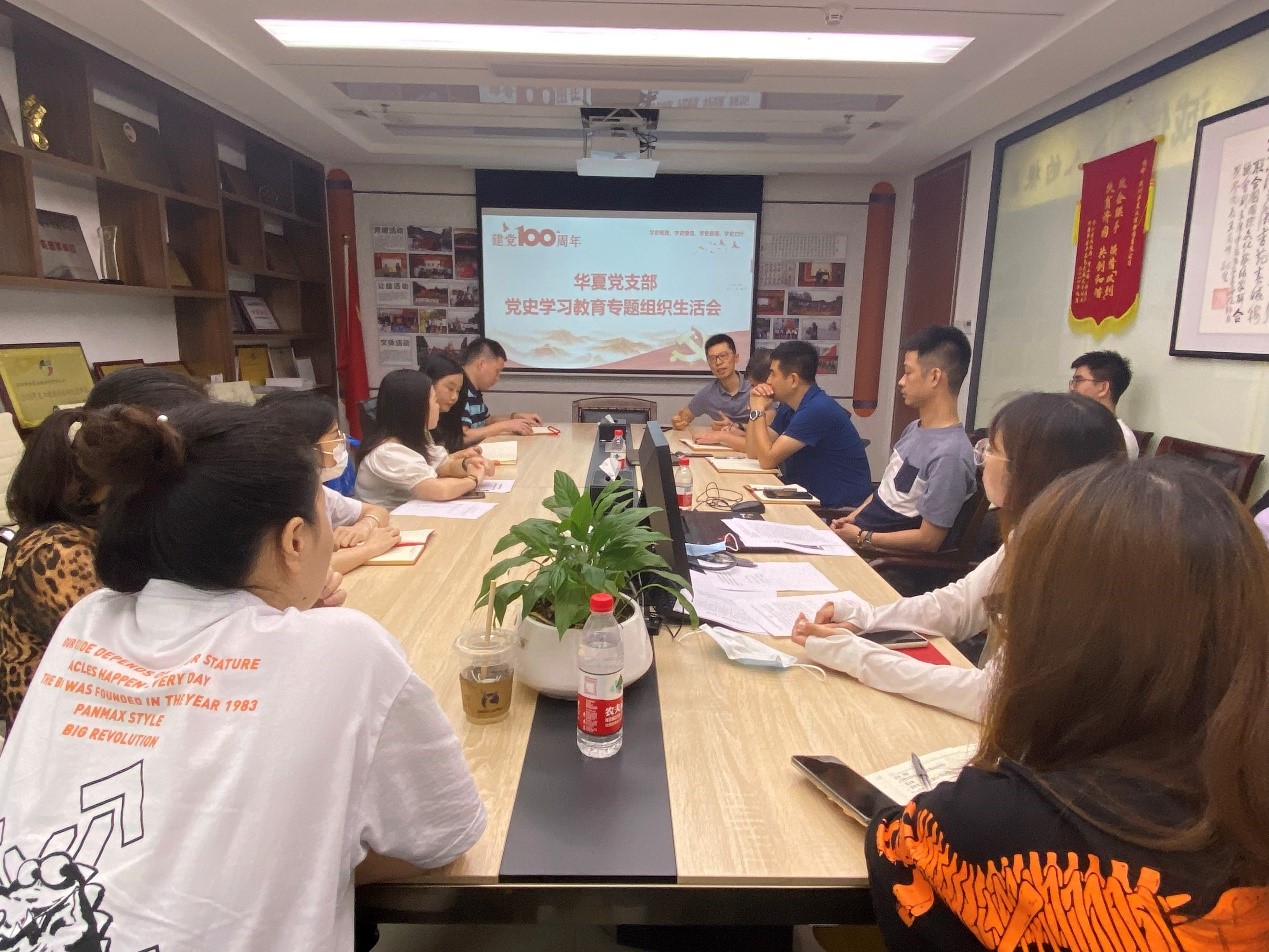 根據(jù)黨中央《關(guān)于在全黨開展黨史學(xué)習(xí)教育的通知》的文件精神,結(jié)合上級(jí)黨委的工作安排,8月6日上午,華夏黨支部在公司總部召開了黨史學(xué)習(xí)教育專題組織生活會(huì)。本次生活會(huì)以“學(xué)黨史、悟思想、辦實(shí)事、開新局”為主題,認(rèn)真貫徹“學(xué)史明理、學(xué)史增信、學(xué)史崇德、學(xué)史力行”的要求,組織黨員暢談學(xué)習(xí)感悟、交流學(xué)習(xí)心得。