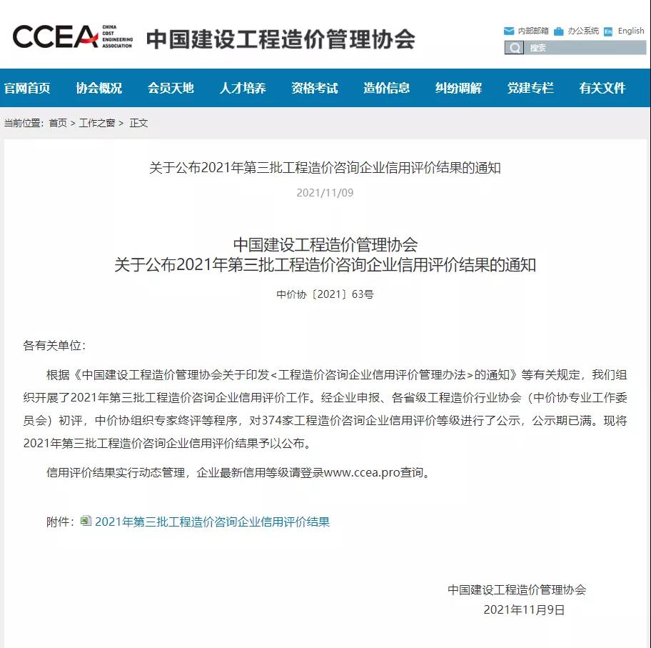 獲得工程造價(jià)咨詢企業(yè)信用AAA級(jí)評(píng)價(jià)(我司已連續(xù)多次獲評(píng)工程造價(jià)咨詢企業(yè)信用AAA評(píng)價(jià)),標(biāo)志著我司在規(guī)范運(yùn)營、誠信經(jīng)營上獲得了國家級(jí)行業(yè)協(xié)會(huì)的高度認(rèn)可。未來,我司將繼續(xù)以“以信立業(yè),以德興業(yè)”的經(jīng)營理念,不忘初心,牢記使命,為客戶提供優(yōu)質(zhì)高效的專業(yè)技術(shù)及熱忱周到的服務(wù)!